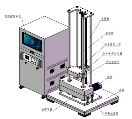 升降高度控制:提升的高度通過安裝在底座上的光電編碼器組件測量,光電編碼器測量具有精度高、抗干擾能力強,可靠性高,保證了沖擊的重復性。